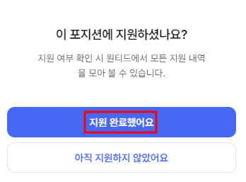 '지원을 완료했어요'를 클릭해 주세요.